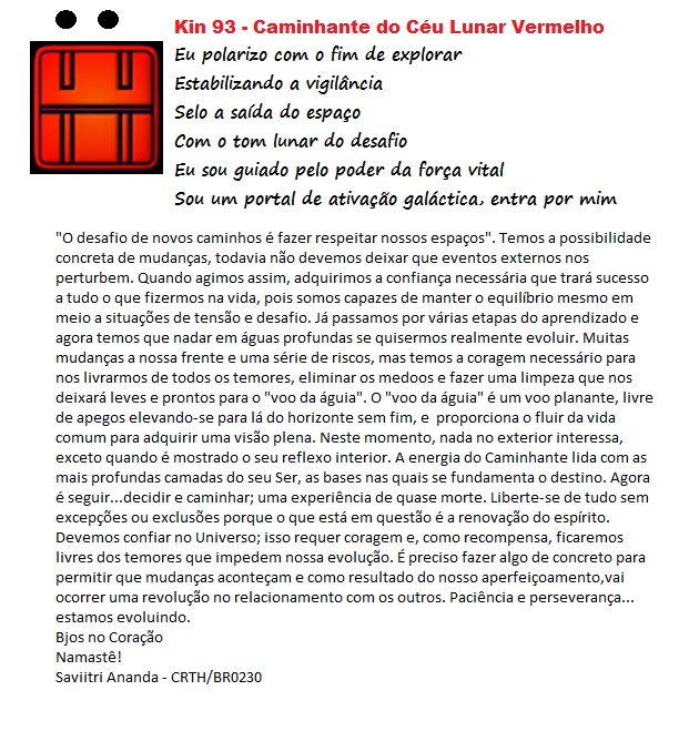 Kin 93, Caminhante do Céu Lunar Vermelho